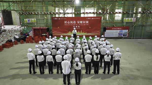 席旭輝總經(jīng)理在致辭中深情回顧了項目自2022年11月開工以來的艱辛歷程。他表示,在730多個日夜的共同奮斗下,惠陽區(qū)科技創(chuàng)新中心項目順利完成了既定建設(shè)任務(wù),今天迎來了封頂這一重要時刻。他感謝所有參建方的辛勤付出和無私奉獻(xiàn),并表示惠陽建筑工程有限公司將繼續(xù)發(fā)揚團(tuán)結(jié)拼搏、創(chuàng)新奉獻(xiàn)的精神,確保高質(zhì)量完成后續(xù)施工任務(wù)。