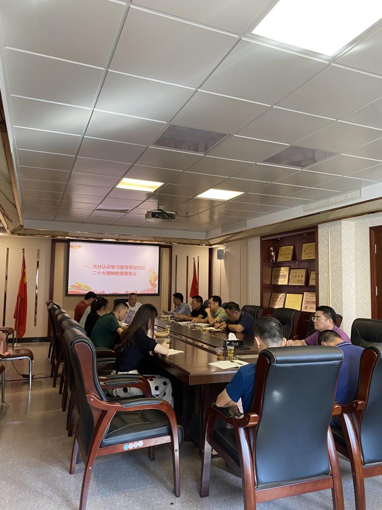 會議指出,公司要把學(xué)習(xí)宣傳貫徹黨的二十大精神作為當(dāng)前和今后一個時期的首要政治任務(wù),與習(xí)近平新時代中國特色社會主義思想結(jié)合起來,與貫徹落實習(xí)近平總書記對廣東系列重要講話和重要指示精神結(jié)合起來,與落實省第十三次黨代會精神結(jié)合起來。各部門要認(rèn)真做好學(xué)習(xí)培訓(xùn)和宣傳教育各項工作,在公司上下興起學(xué)習(xí)宣傳貫徹?zé)岢?。要以高度的政治?zé)任感和使命感,牢牢把握正確方向?qū)?,切實把思想和行動統(tǒng)一到黨的二十大部署要求上來。要做到突出國企特色,把學(xué)習(xí)宣傳貫徹二十大精神作為首要政治任務(wù)、周密安排推進,扎實做好二十大精神學(xué)習(xí)宣傳工作、促進落地生根,真正用黨的二十大精神指引企業(yè)黨的建設(shè)和改革發(fā)展、堅持貫通融合,充分發(fā)揮領(lǐng)導(dǎo)干部引領(lǐng)帶動作用。