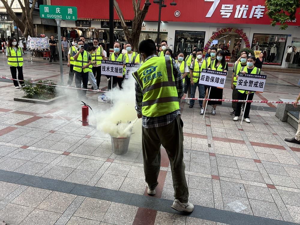 下午3:00時(shí)許,各工作組成員各就各位,隨著演練工作組組長席旭輝同志一聲令下“應(yīng)急演練正式開始”。隨即各工作組成員按級(jí)分工展開演練。演練現(xiàn)場,從發(fā)現(xiàn)火情到組織現(xiàn)場滅火;從救護(hù)被困人員到人工急救傷員;從各樓層人員疏散到撤離至安全地帶。然后,各救援小組負(fù)責(zé)人向現(xiàn)場指揮段傳海報(bào)告現(xiàn)場演練情況。演練結(jié)束后,專職安全員陳立峰現(xiàn)場演示了滅火器的正確使用方法,并讓大家親自體驗(yàn)了滅火過程,確保所有參訓(xùn)人員正確掌握滅火器的操作技能。