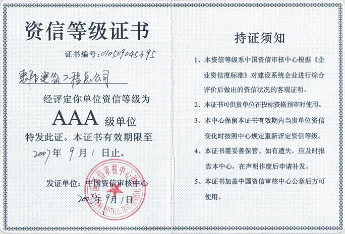 資信等級(jí)證書(shū)